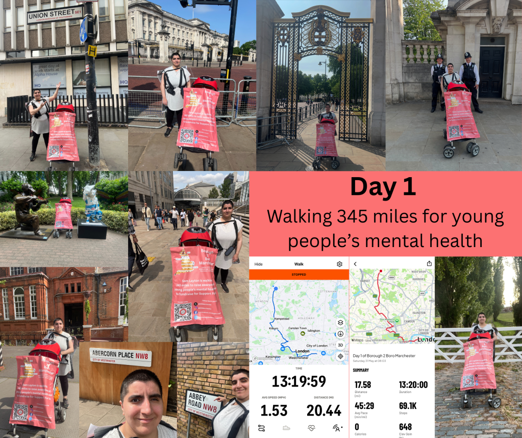 In 2024 I walked the Brighton Marathon to fundraise for Support For Us. If you told me when I was 16 that I would walk a marathon as an adult, I would burst out laughing, slam the door in you face and then burst out laughing again. Alongside never having any real aspirations, me and walking did not go well as a teenager. With the exception of specific half mile walks home, I never walked anywhere. If I was told to walk 1.5 miles to go to school; I’d have likely flat out refused to go to school. In 2024, I walked a 26.2 mile marathon. In 2025, I am walking 345 miles.